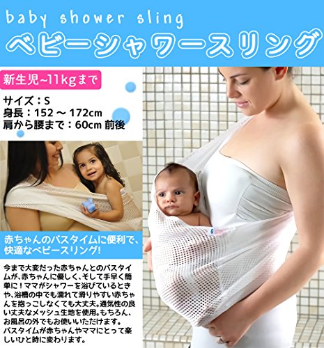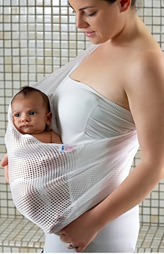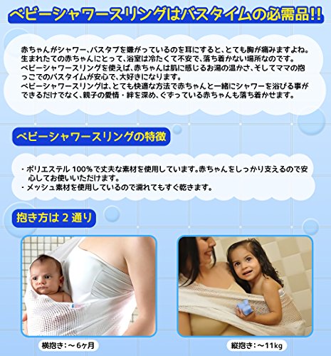 バスタイム時に使えるスリング!! 今まで大変だった赤ちゃんのバスタイムが、赤ちゃんに優しく、そして手早く簡単に!!ママがシャワーを浴びているときや、浴槽の中にいるときも濡れて滑りやすい赤ちゃんを抱っこしなくても大丈夫。もちろんお風呂の外でもご使用いただけます。