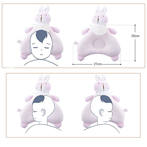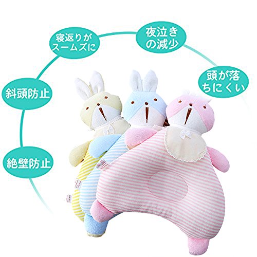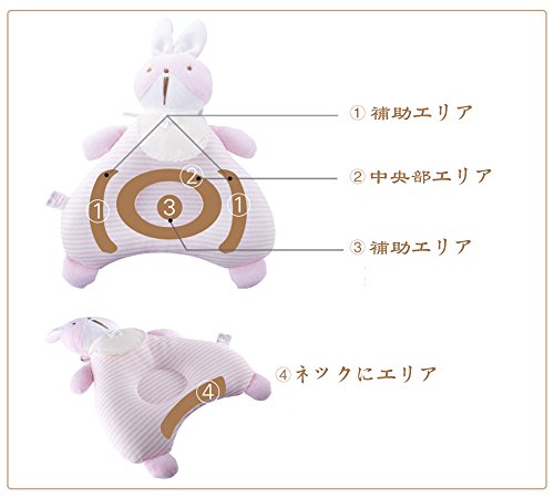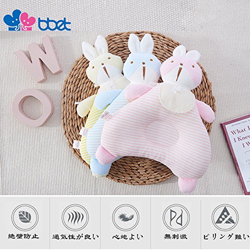 Bbet ベビー枕 うさぎ 綿100% 絶壁防止枕 斜頭 絶壁頭 変形 通気性抜群 出産祝い 0~6ヶ月 (うさぎ-ピンク)