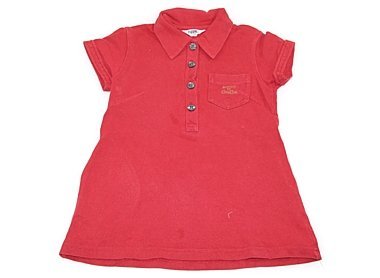ブランドタグに記名跡あり。鹿の子素材のポロです。全体的に色褪せがありますが目立った汚れはありません。着丈43cmです。Aラインなのでチュニック、ワンピースふうにどうぞ。(記名あり)