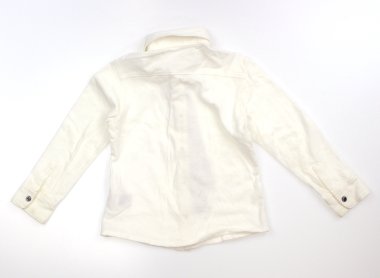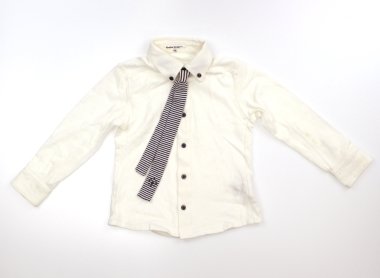 - ポロシャツ素材です。ネクタイは取外し可。右衿の内側に薄汚れ、左の肘内側や左袖に複数1cmほどの黄色い汚れがありますが、まだまだ普段着として活躍してくれそうです。