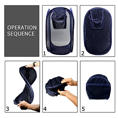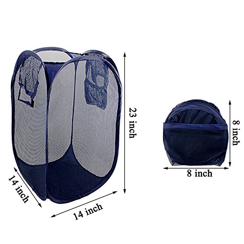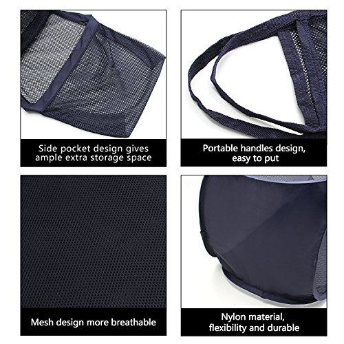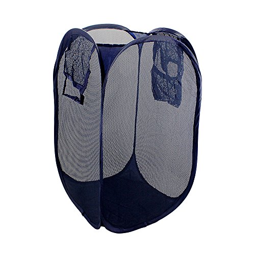 BeGritポップアップランドリーHamperメッシュ折りたたみ式バスケットストレージバッグwith Side Pocket andハンドル ブルー SW8685-1