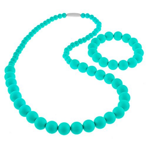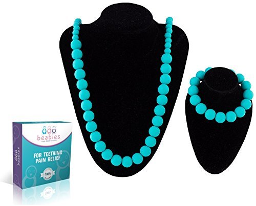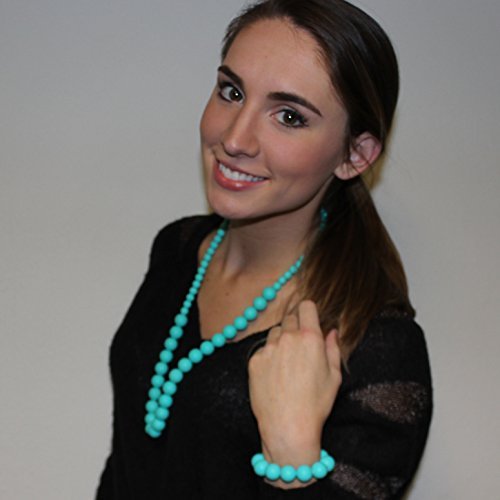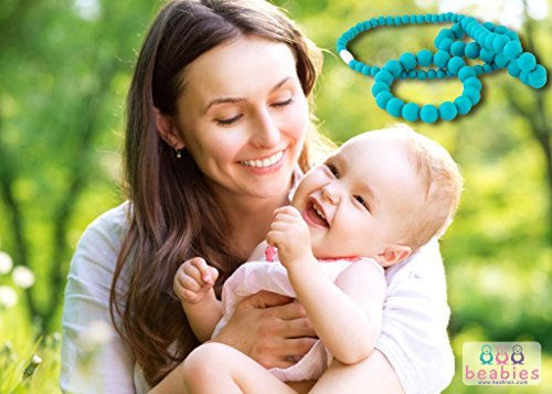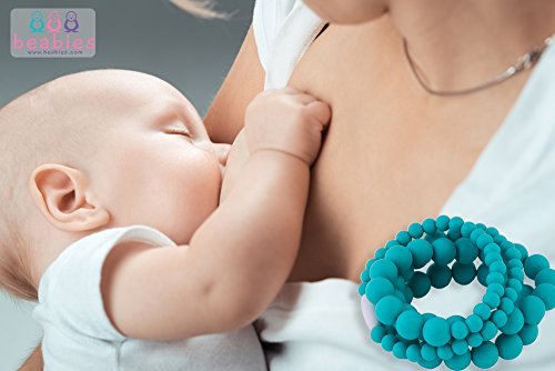 Beabies Teething Necklace for Mom to Wear and Teether Bracelet - FDA Silicone Nursing, Breastfeeding Necklace Beads Jewelry for Soothing Pain Relief - Smart Baby Shower Registry Gift (Turquoise/Teal/Green) [並行輸入品]