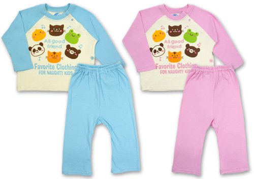 (ベアボックス)Bear Box 【BearBox】 ベアボックス スムス綿 ボタン付き アニマル柄 T型長そでパジャマ 80cm/90cm/95cm 95 ピンク