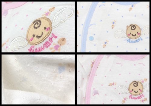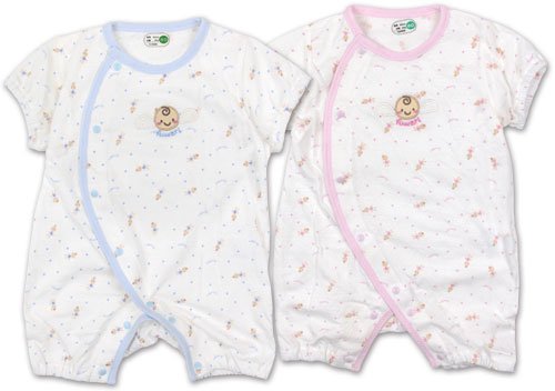 商品説明: ベアボックスのエンゼルプリントとアップリケがCUTEなちびオールです 通気性の良いパターンメッシュ天竺素材使用 右肩からお股のスナップで着脱ラクラク☆ 全体はエンゼルや羽根の総柄で、まるで天使のようなベビーちゃんにピッタリ お胸中心部にはニッコリ天使ちゃんフェイスアップリケと「fuwari」の刺しゅう入り お色はサックスとピンクの2色展開です サイズ: 60/70 カラー: サックス/ピンク 素材: 綿100% 原産国: 中国
