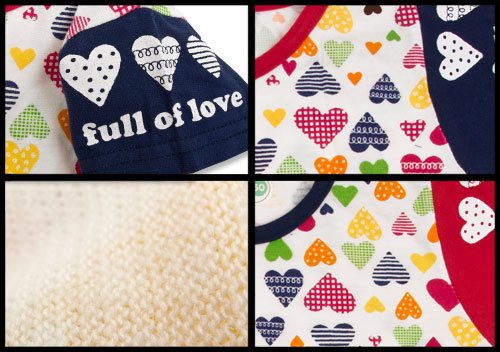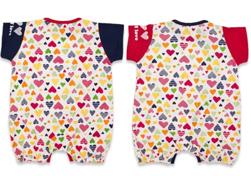 商品説明: ベアボックスからハートでいっぱいのCUTEなちびオールです。 汗を吸収しやすく、ニット生地では天竺綿使用。 右肩からおまたのスナップで着脱ラクラク いろんな大きさのカラフルなハート総柄でとってもCUTE。 左のお袖にも嬉しいハートプリント入り お色はネイビー袖とレッド袖の2色展開です。 サイズ: 60cm/70cm カラー: ネイビー袖/レッド袖 素材: 綿100% 原産国: 中国