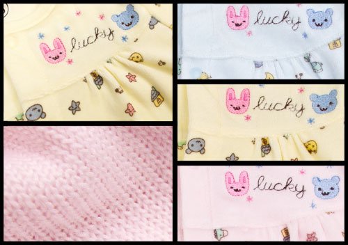 商品説明: ベアボックスからお胸の刺繍が可愛いコンビドレスです ソフトで肌触りが良く、保湿性にも優れたベロア素材使用。 センターからおまたのスナップで着脱もラクラク ベビーちゃんの成長に合わせて2通りの着用が可能。 最初はドレスにして足元ゆったり 動きが活発になってきたらおまたのスナップをとめてカバーオールにして足元すっきり 全体はゾウや馬などの動物たちと、 小さなお家や三日月などの可愛らしいイラスト総柄。 胸元切替で、左胸にはウサギとクマの刺繍入りです お色はサックス、クリーム、ピンクの3色展開。 サイズ: 50-60cm カラー: サックス/クリーム/ピンク 素材: 綿80% ポリエステル20% 原産国: 中国