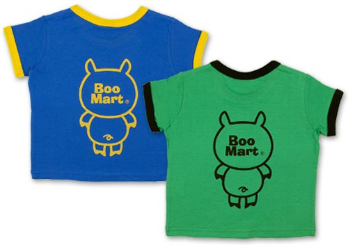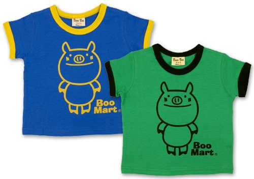 ベアボックスとブーマートがコラボしたプリント半そでTシャツです 汗を吸収しやすく、ニット生地では定番の肌着やTシャツによく使われる天竺面使用 表は全身が入ったにっこりブーフェイスとブーマートのロゴプリント入り☆ 後にもブーの全身プリントと頭にはブーのロゴプリント リブ部分と本体の色の相性も抜群 シンプルでコーデしやすい一枚☆ お色はブルーとグリーンの2色展開です サイズ: 80/90/95/100 カラー: ブルー/グリーン 素材: 本体 綿100% リブ部分 綿95% ポリウレタン5% 原産国: 中国