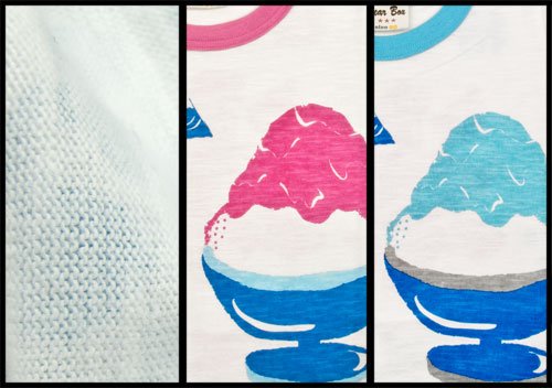 商品説明: ベアボックスのかき氷プリント半そでTシャツです 肌あたりの優しい天竺に凸凹感を出したスラブ天竺素材使用 夏にピッタリ 見るだけで涼しい気分になる、かき氷プリント 背中にはかき氷のぼりプリント入り 暑い夏が楽しくなる1枚です お色はピンク、サックスの2色展開 サイズ:80cm/90cm/95cm/100cm カラー:ピンク/サックス 素材:本体 綿100%リブ部分 綿95% ポリウレタン5% 原産国:中国