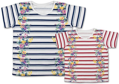 (ベアボックス)Bear Box 綿100% フラワープリント 半そでTシャツ 130cm ボーダーネイビー