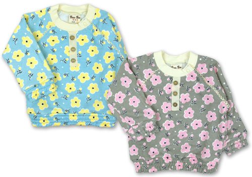 (ベアボックス)Bear Box 【BearBox】 ベアボックス 花柄 飾りボタン付 トレーナー 80cm/90cm/95cm/100cm 100cm グレー
