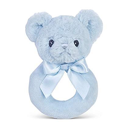 Bearington Baby Huggie Teddy Bear Plush Ring Rattle (Blue) 5.5 [並行輸入品]