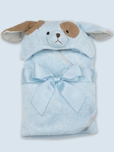 This incredibly soft towel is perfect for drying baby after coming out of the bath or a trip to the pool/beach.;This adorable blue towel has a puppy dog head hood, complete with puppy ears!;This hooded baby towel is made with high quality, soft cotton terry and satin trim.;Measuring 24 x 24,
