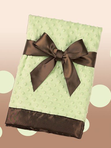Bearington Baby Collection;The front of the blanket features unbelievably soft and plush dottie fabric with satin trim on the edges;The back of the blanket is a soft chocolate satin that matches the trim - what a wonderful baby gift;This baby blanket is a perfect match to the Bearington Baby Giggles collection;This baby blanket is machine washable and has distinct fabric and satin textures that baby will love to rub and snuggle