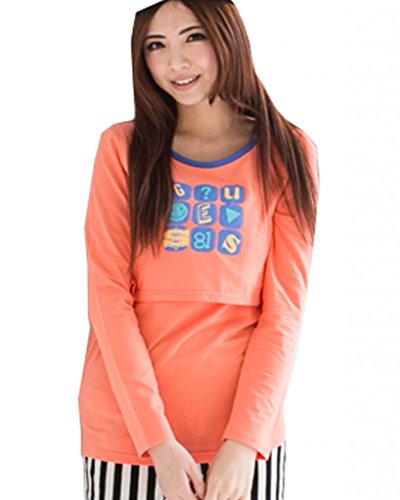 (ベア・ランド ) Bearsland長袖ラウンドネックコットン授乳口付きマタニティTシャツ授乳服 L オレンジ