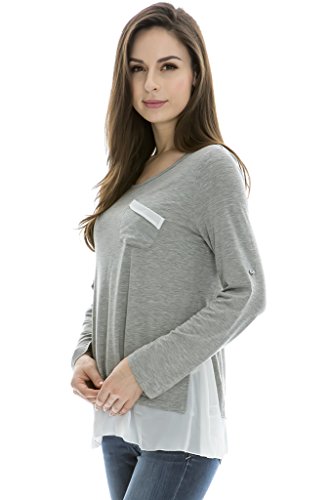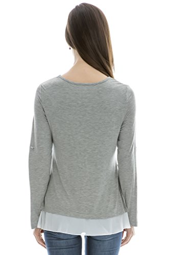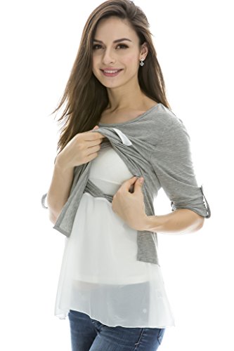 (ベア・ランド ) Bearsland長袖ラウンドネック重ね着風レースコットンドッキング授乳口付きマタニティトップス授乳服 M グレー【並行輸入品】