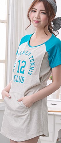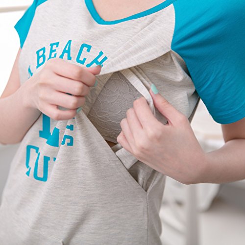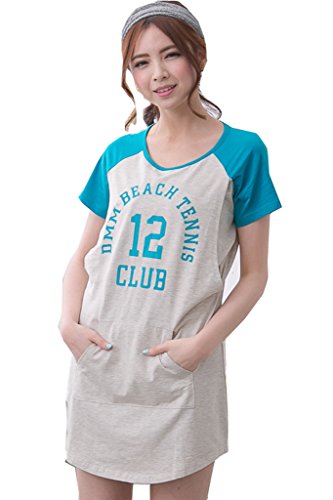 (ベア・ランド ) Bearsland春秋半袖ラウンドネックロング授乳口付きマタニティトップスワンピース授乳服Lブルーグレー [並行輸入品]