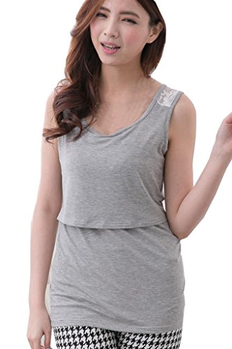 (ベア・ランド ) Bearsland 夏 ノースリーブ ラウンドネック授乳口付きマタニティトップスタンクトップ授乳服 Lグレー [並行輸入品]