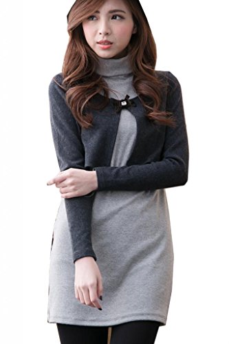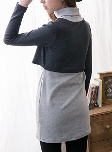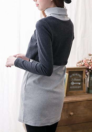 (ベア・ランド ) Bearsland長袖タートルネック重ね着風ドッキング授乳口付きマタニティワンピース授乳服 XXL グレー【並行輸入品】