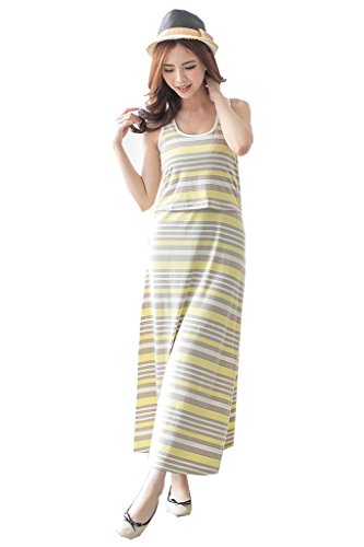 (ベア・ランド ) Bearsland 夏 ノースリーブ ストライプ 授乳口付きマタニティワンピース M イエロー 【並行輸入品】