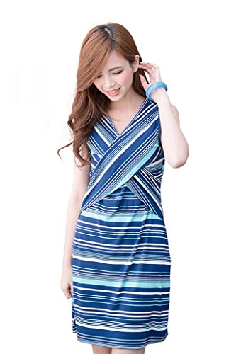 (ベア・ランド ) Bearsland 春夏半袖Vネックノースリーブボーダーマタニティワンピース授乳服 Mブルー [並行輸入品]