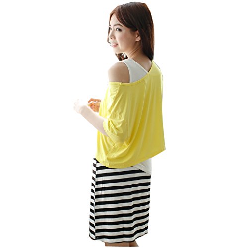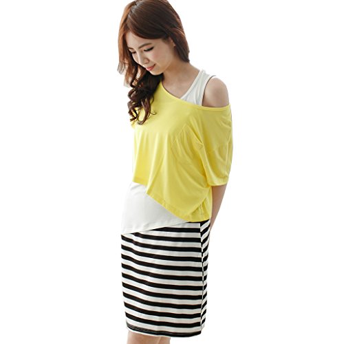 (ベア・ランド ) Bearsland 夏 ブランドネック 半袖 ショート丈 切り替えワンピースの2点セット 授乳口付きマタニティーウェア 授乳服 XL [並行輸入品]