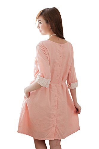 (ベア・ランド ) Bearsland春夏秋 ブランドネック 半袖 薄い無地綿麻リネン3wayマタニティーワンピース 授乳ワンピースL [並行輸入品]