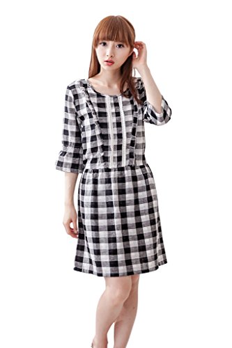 (ベア・ランド ) Bearsland春夏秋 コットン100%二重ガーゼギンガムチェック前開き半袖授乳ワンピース 授乳パジャマ 授乳服