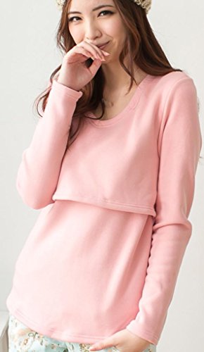 (ベア・ランド ) Bearsland長袖レティーコットン100%授乳口付きマタニティパジャマ授乳服上下セット M ピンク【並行輸入品】