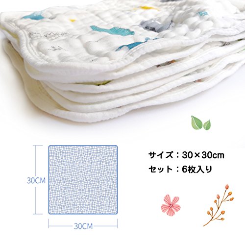 Bearui ベビーハンカチ 赤ちゃんタオル ガーゼハンカチ ガーゼタオル 新生児ガーゼハンカチ 自然綿タオル 無添加 瞬間吸水 軽量 速乾 細菌防止 6層ガーゼ 天然綿100% 30 * 30cm 6枚 ウォッシュクロスセット