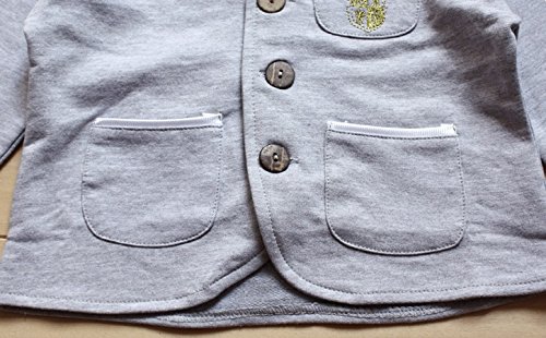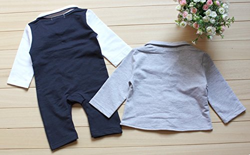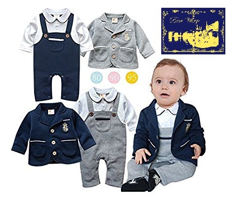 Beau Village(ボー・ヴィラージュ) ベビー フォーマル ブレザー 付き オーバーオール 風 ロンパース (95, グレーブレザー & ネイビーロンパース)