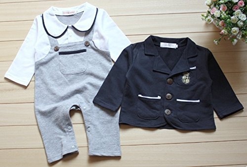 - インナーはブラウス一体型のオーバーオール風ロンパース 。 股下スナップでおむつ替えも楽ラク♪ アウターはビシッと決まるブレザージャケット♪ 赤ちゃんの肌にも優しい柔らか素材です。