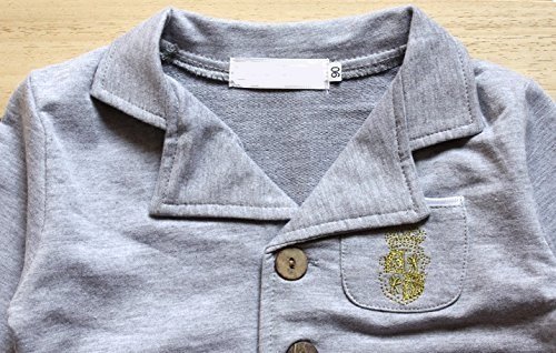 Beau Village(ボー・ヴィラージュ) ベビー フォーマル ブレザー 付き オーバーオール 風 ロンパース (80, グレーブレザー & ネイビーロンパース)