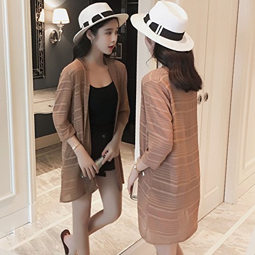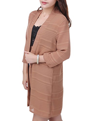 (ビュード)BeauDO ロングカーディガン シフォン 7分袖 薄手 とろみ ニット レディース (4.カーキ)
