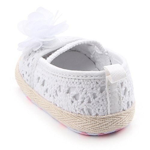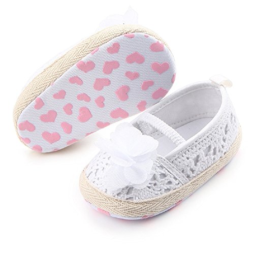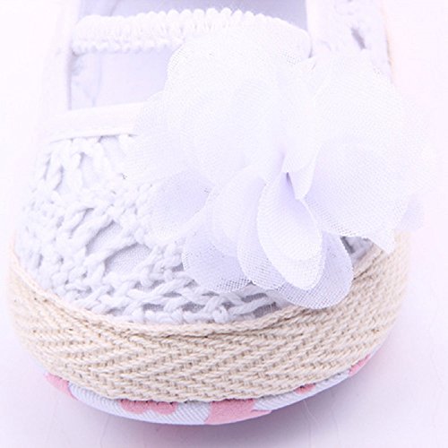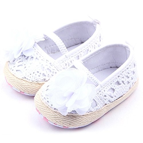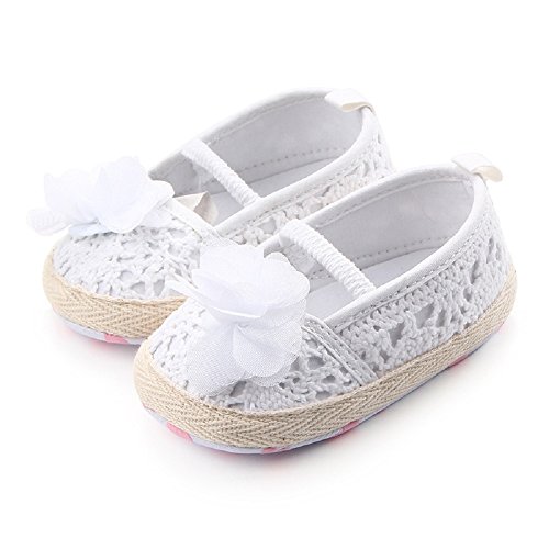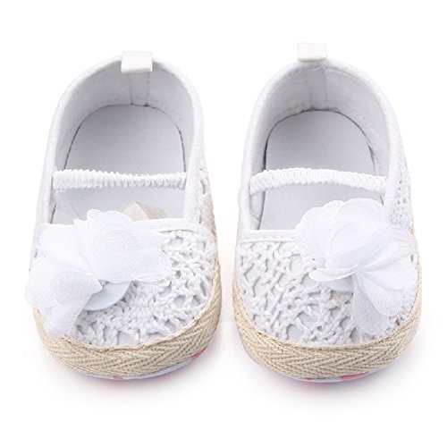 0〜12ヶ月新生児の幼児の女の子の花編みソフトソールの歩行靴プレウォーカーサンダル綿の滑り止め通気性の夏可愛いプリンセススニーカー (11, ホワイト)