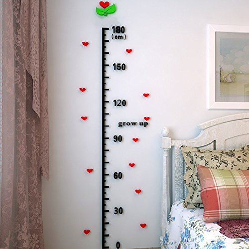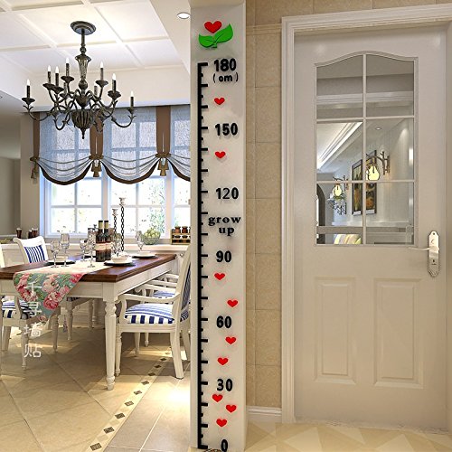 1.6M/1.8M かわいいクリスタルアクリル3D高さ測定壁ステッカーデカール赤ちゃん成長チャートツリー家族の赤ちゃんポスターステッカーの壁紙ベビールームDIYインテリア (1.8M)