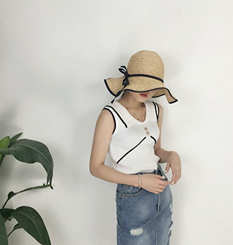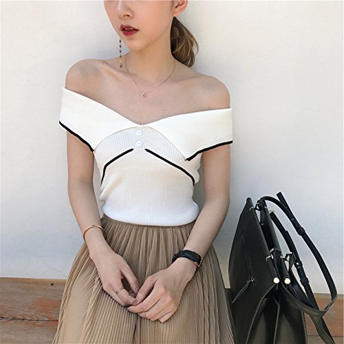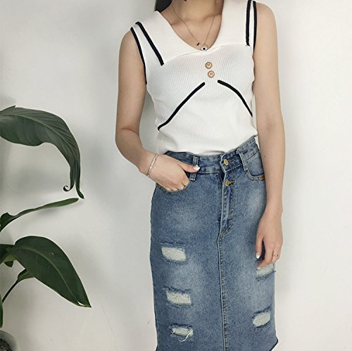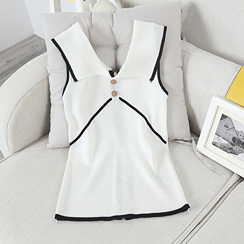 女性の夏のニットノースリーブセーターVネックスリムフィットバックジッパーファッション夏のセーターのトップスのティー (ホワイト)