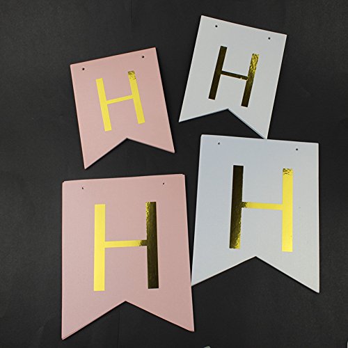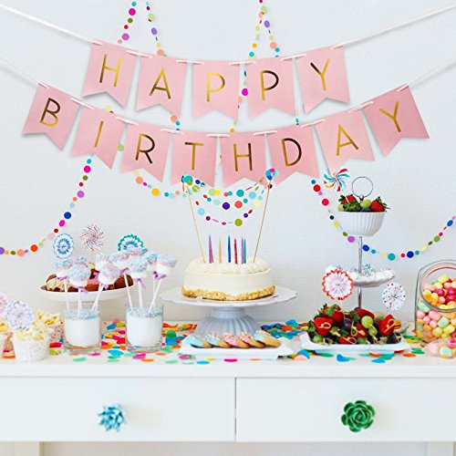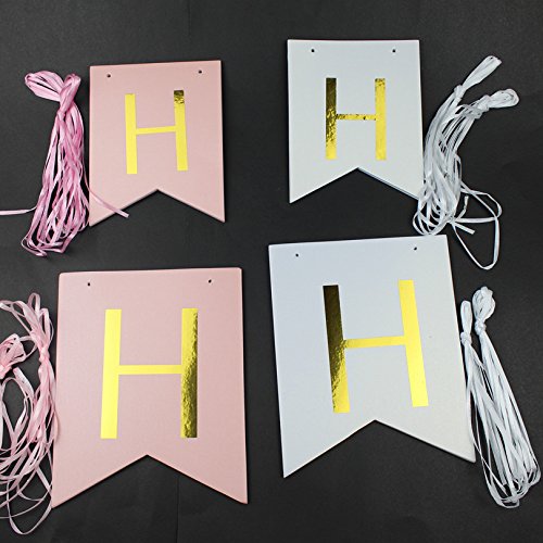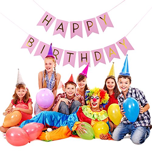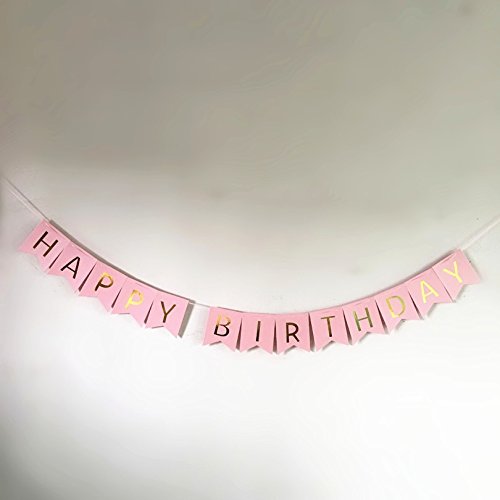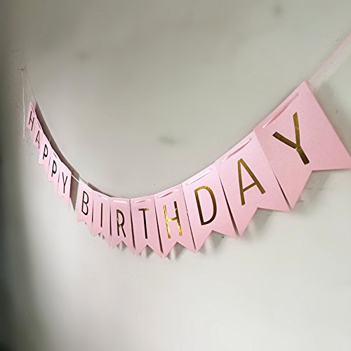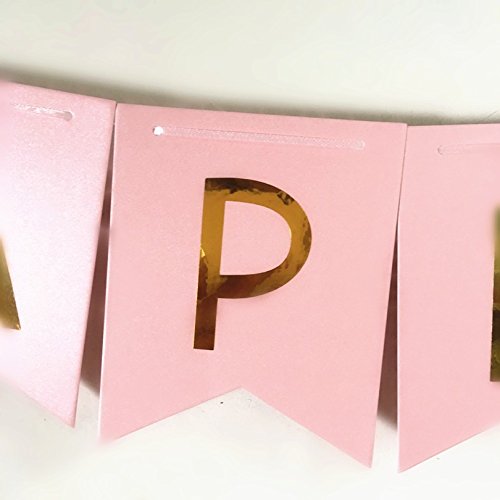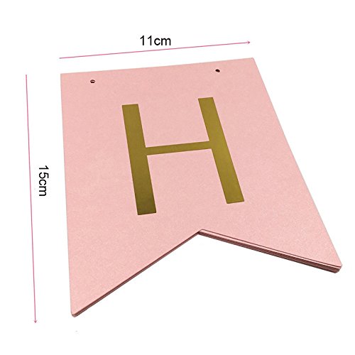 1セットキラキラハッピーバースデーバナーバナーバナー金の手紙 花輪の旗を吊るすベビーシャワーの誕生日パーティーデコレーションの小道具 (ピンク)