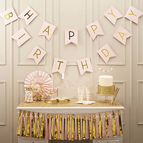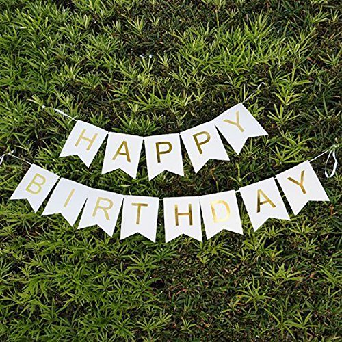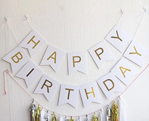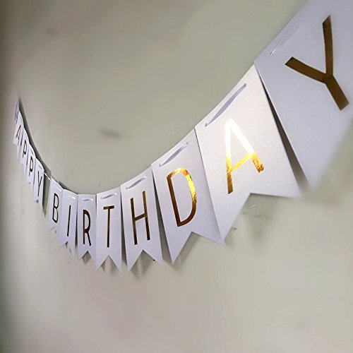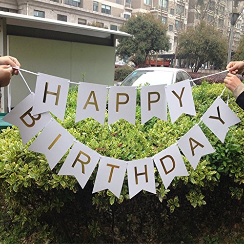 1セットキラキラハッピーバースデーバナーバナーバナー金の手紙 花輪の旗を吊るすベビーシャワーの誕生日パーティーデコレーションの小道具 (ホワイト)