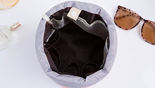 BeautyCN バレル形ナイロントラベルコスメティックバッグドローストリングウォッシュバッグメイクオーガナイザー収納バッグ大容量17x23cm (#2)-ピンク