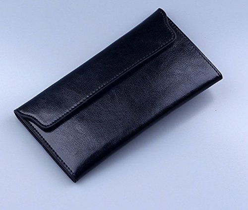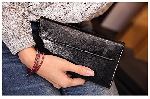 本物のレザーの女性の財布の長財布ヴィンテージ固体の牛革複数のカードホルダークラッチファッションの標準的な財布 (ブラック)