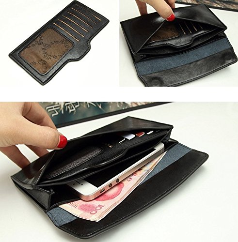 - スーパーキャパシティデザイン:6枚のカードスロット、2枚の大きなコイン/電話/現金用 あなたはあなたの電話を内部に置くことができます。 サイズ:19 * 10 * 1センチメートル;素材:革;色:ブラック、パープル