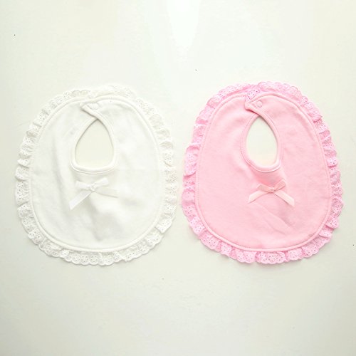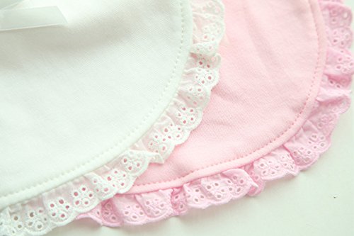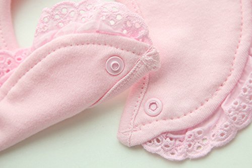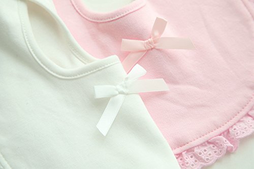 3個赤ちゃんのかわいいかわいい綿の三角形の丸いレースの弓プリンセスバンダナベビータオル新生児の敏感なバンダナスーパー柔らかい赤ん坊の胸元 (ピンク)
