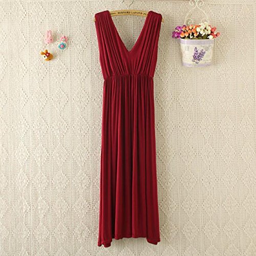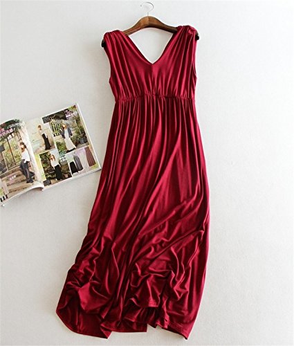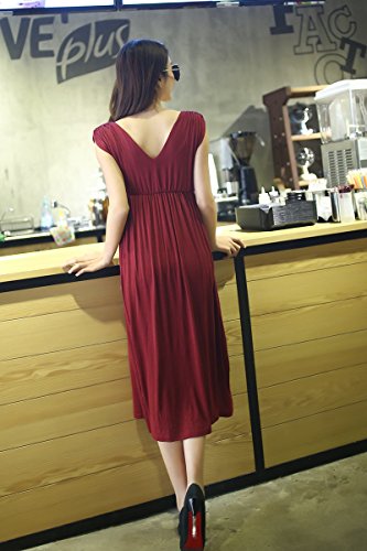 夏の女性の女の子Vネックのイブニングドレスロングドレスの妊婦のドレス妊娠服伸縮性のあるソフトルーズなスリムなファッションパーティー外出ビーチドレス 吸収性 通気性 (Vネック/ ワインレッド)