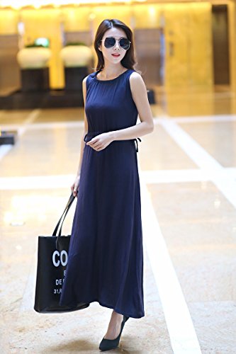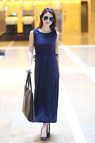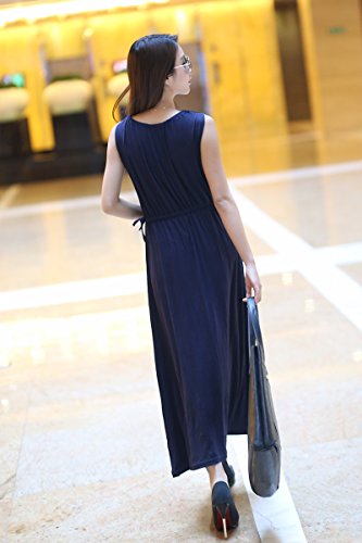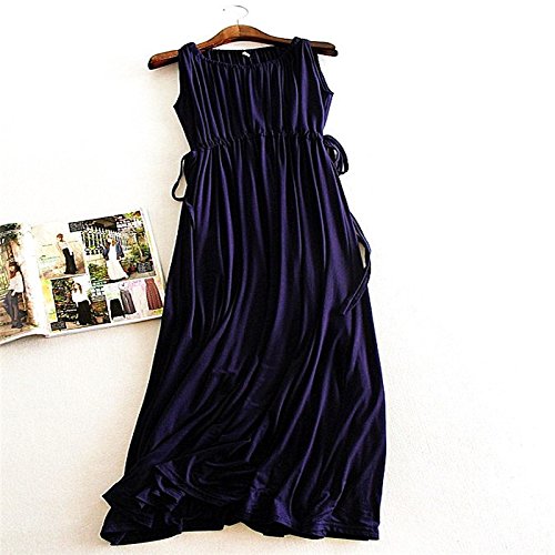 夏の女性の女の子Vネックのイブニングドレスロングドレスの妊婦のドレス妊娠服伸縮性のあるソフトルーズなスリムなファッションパーティー外出ビーチドレス 吸収性 通気性 (巾着ウエスト/ダークブルー)