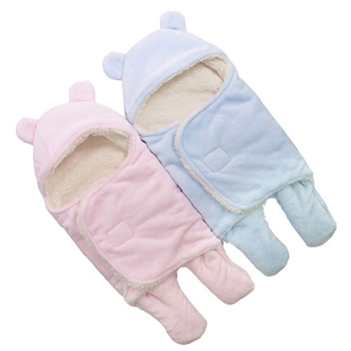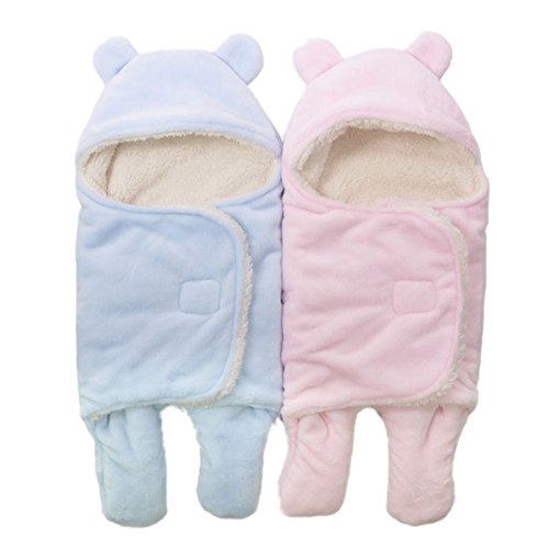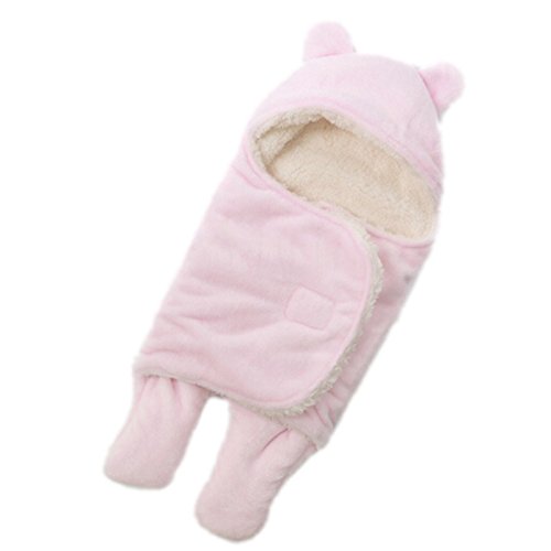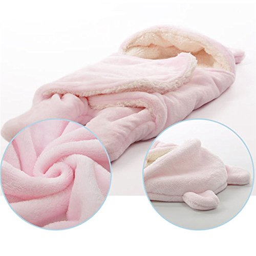 S/Lサイズベビーパーカ居心地の良い柔らかいフランネルの春秋の赤ん坊のぬいぐるみ毛布幼児用ラップ用寝袋 (L(78X86cm), ピンク)