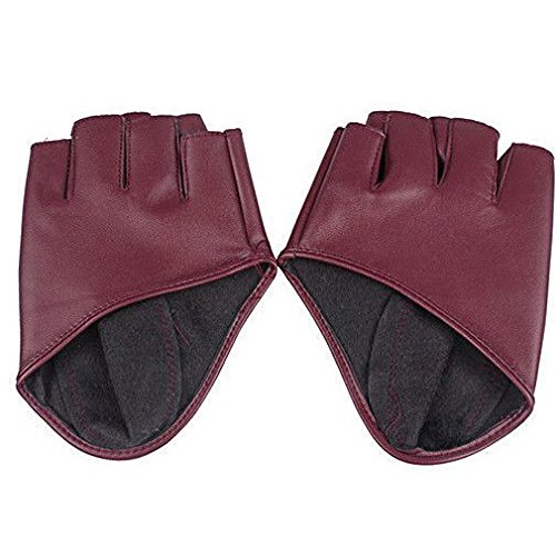 ファッションPUハーフフィンガーレディースレディース女性の指のないドライブショージャズ手袋女性の男性 (ワインレッド)
