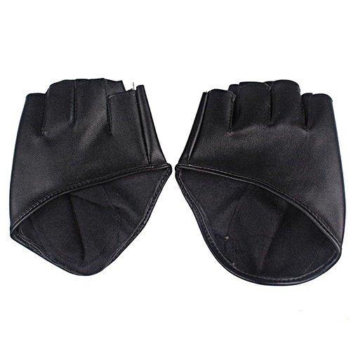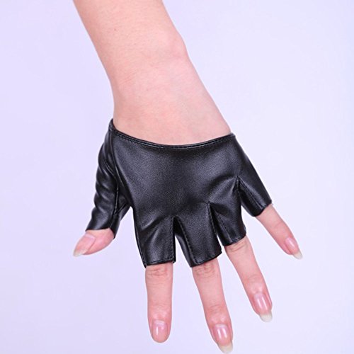 ファッションPUハーフフィンガーレディースレディース女性の指のないドライブショージャズ手袋女性の男性 (ブラック)