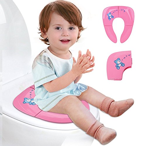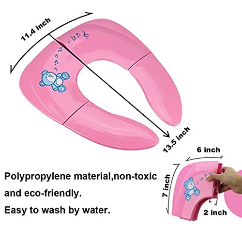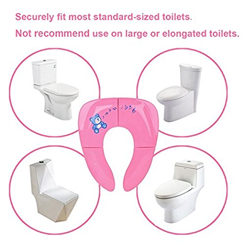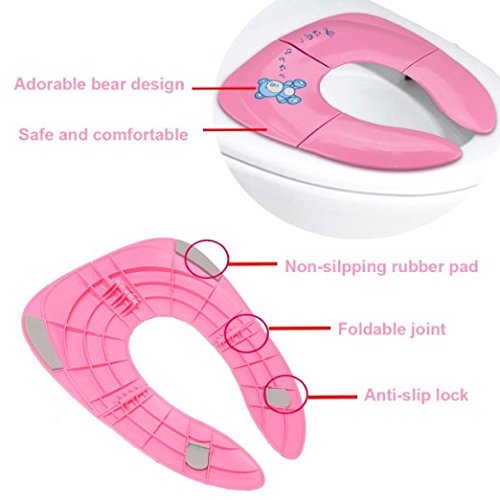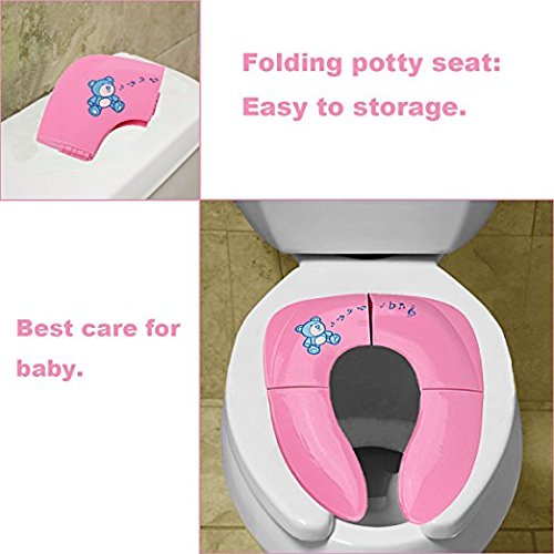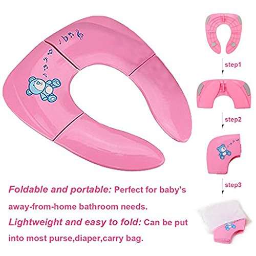 Beautyhouse 折りたたみ式 幼児用補助便座 おまる 赤ちゃん 可愛い 安全 無毒 子供用トイレ便座 外出 ショッピング トイレトレーニング 家庭用 旅行用 持ち運び 携帯型 便座カバー 補助便座 旅行 ホーム 抗菌防臭 クマ柄 (ピンク)