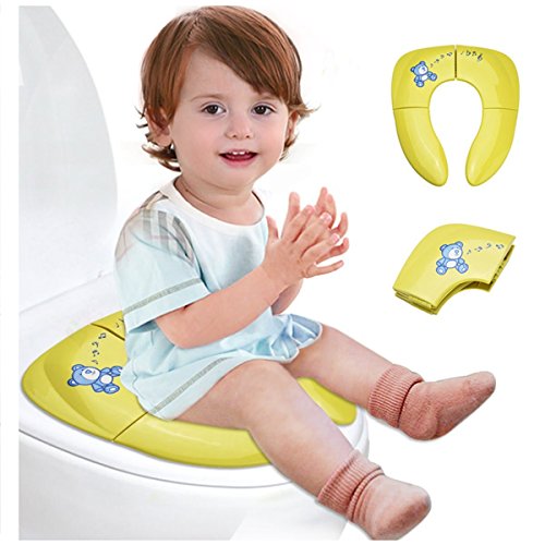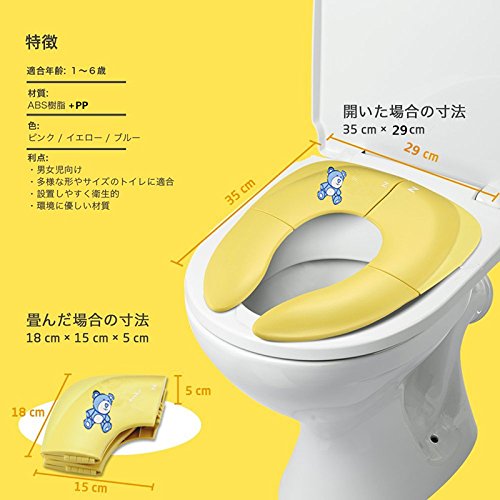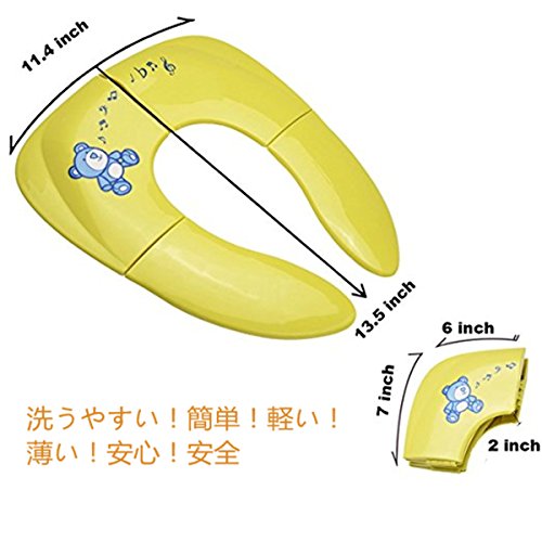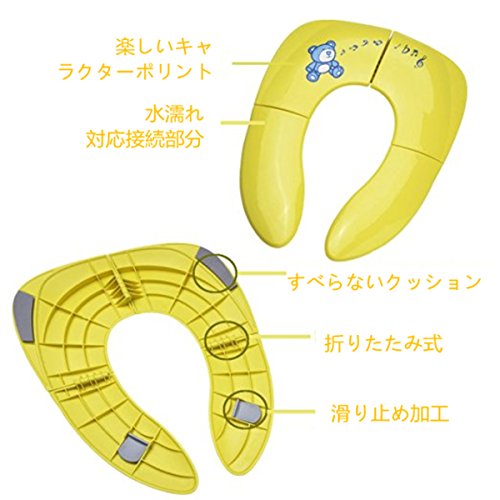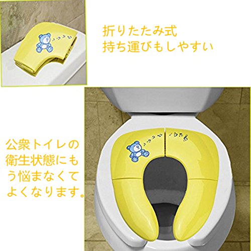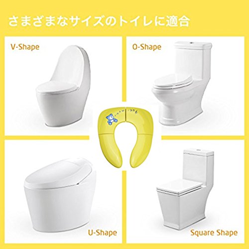 Beautyhouse 折りたたみ式 幼児用補助便座 おまる 赤ちゃん 可愛い 安全 無毒 子供用トイレ便座 外出 ショッピング トイレトレーニング 家庭用 旅行用 持ち運び 携帯型 便座カバー 補助便座 旅行 ホーム 抗菌防臭 クマ柄 (黄)