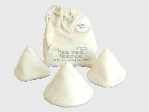 100% organic cotton;Each pack contains 5 Pee-pee Teepees;Fully washable and re-usable;Packed in a matching laundry bag;Made in Canada